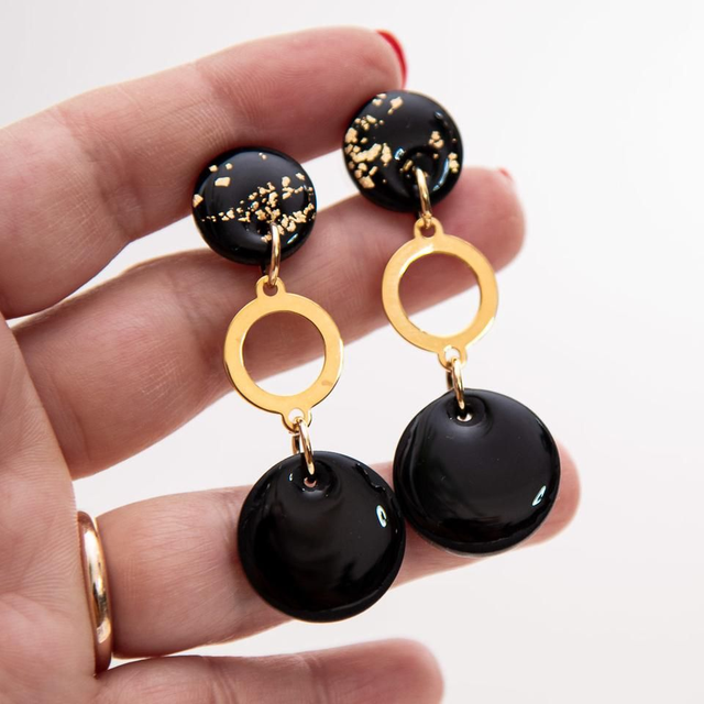 Handcrafted polymer clay earrings, lightweight unique. Items may slightly differ from pictures due to being handmade. (some elements, like flowers, dots, stripes, marbling might be placed differently) Stainless steel ear post. Earrings measuring approximately 7cm.