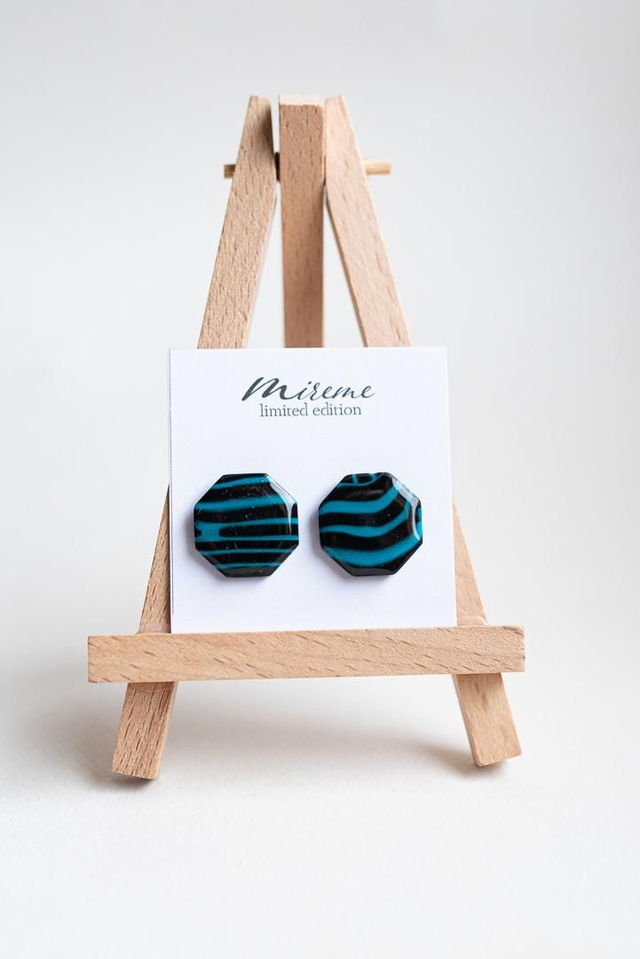 Handcrafted polymer clay earrings, lightweight and unique. Items may slightly differ from pictures due to being handmade. (some elements, like flowers, dots, stripes, marbling might be placed differently) Stainless steel ear post. Earrings measuring approximately 2cm.
