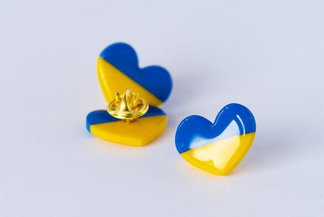 The solidarity pins were created to raise money for The British Red Cross in aid of Ukrainian families.